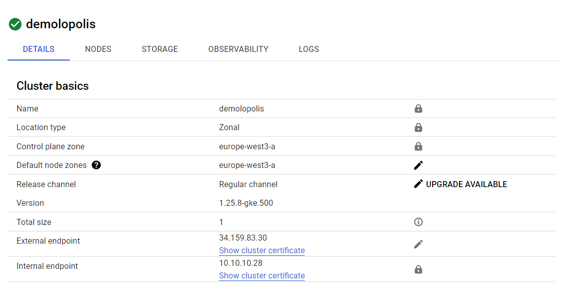 gcloud container clusters get-credentials demolopolis --region europe-west3-a